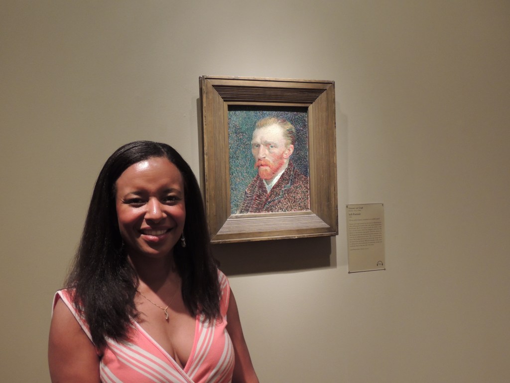 Then we visited the Art Institute of Chicago. We had a little over two hours and soaked up impressionist paintings by the masters, paper weight art, Asian religious artifacts and a very weird modern installation. I’ve always had a love affair with Van Gogh and got up close and personal with his self-portrait: