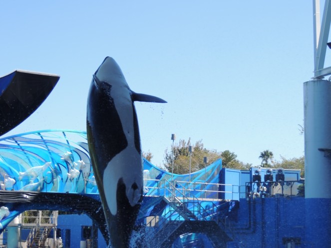 I was also impressed with Sea World’s dedication to conservation. The killer whale show has been under intense criticism the last few years. However, in a video before the show, the trainers explained the efforts Sea World is making to improve the habitat for the whales, educating its visitors and shedding its sullied reputation, thereby continuing to collect admission tickets (let’s face it, we could have gone on a roller coaster anywhere, we wanted to see the whales), a portion of which continues the conservation effort for a number of sea creatures.
