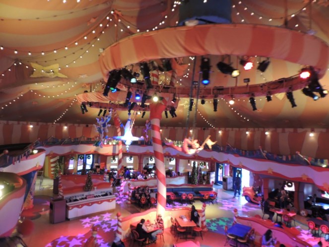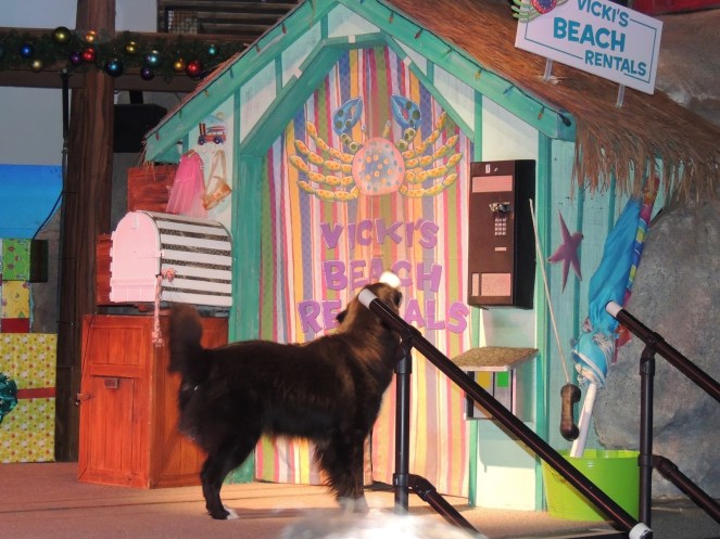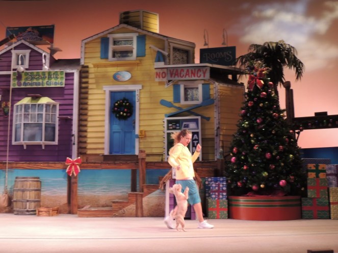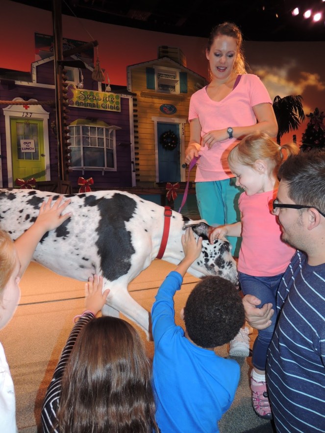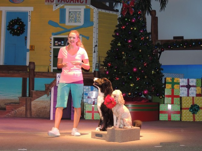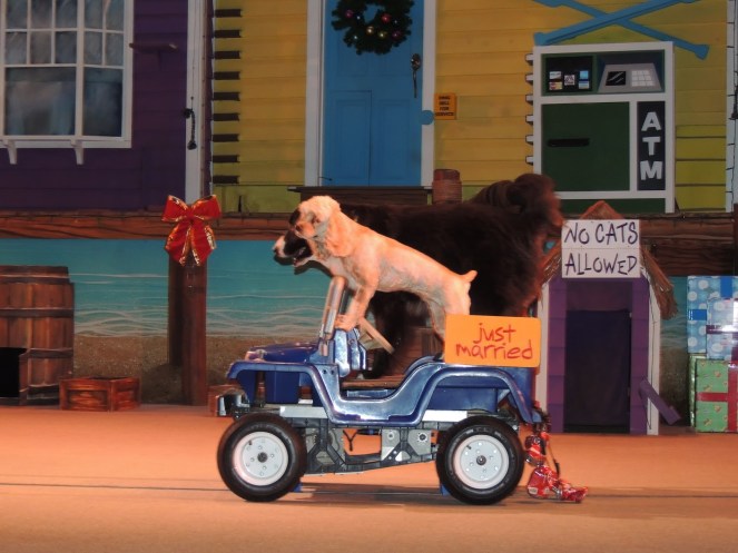 Serendipitously, we stumbled across an animal show and scored reserved seating up front as the theatre was packed. This was a super cute show featuring dogs, cats, bird, a pig, skunk and mouse. Afterward, we got to meet several of the dogs on stage.