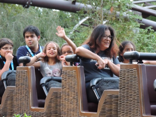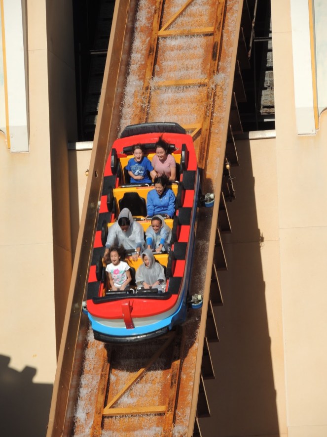 Next came Ripsaw Falls and Bilge Rat Barges. Our ponchos held up great on the falls, but we were soaked through on the barges from head to foot!