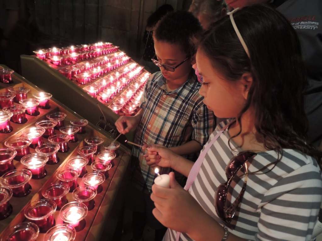 Stinky and Blinky lighting a candle and saying a prayer