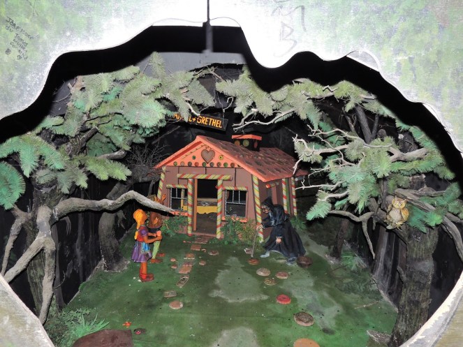 One of the trails led us to Fairyland Caverns and Mother Goose Village. The caverns were dark and the displays were dimly lit which at times gave off an eerie vibe to me. Stinky and Blinky couldn’t get enough! Overall I thought it was a creative use of unusual spaces, incorporating woodland elements.