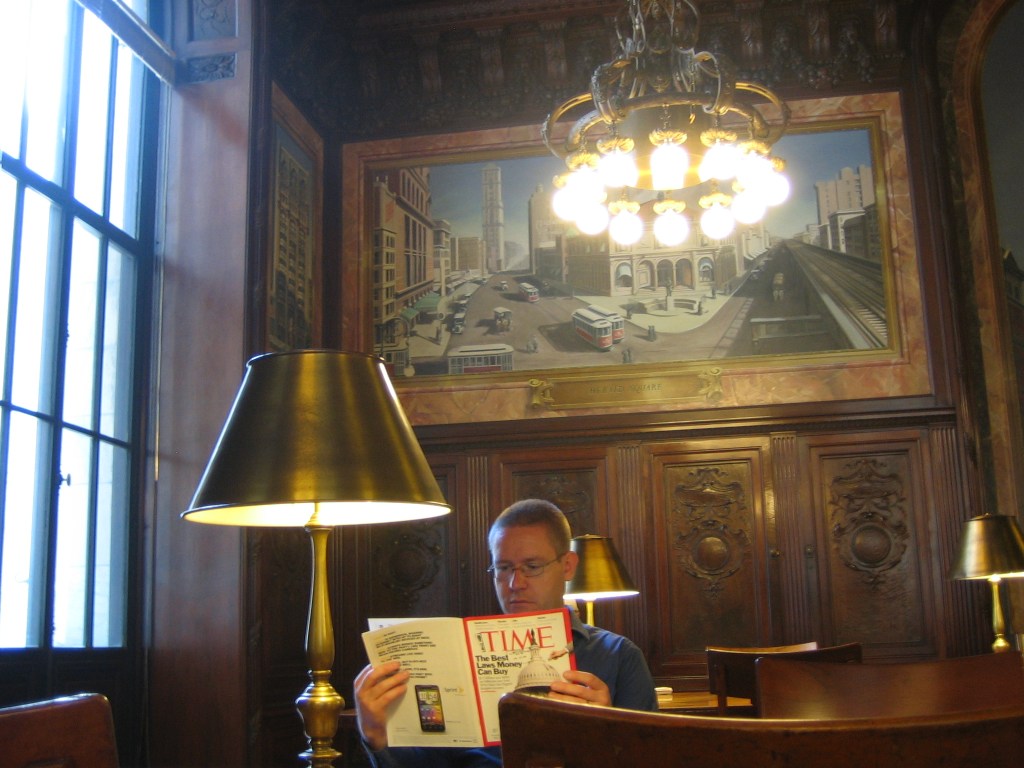 On Sunday morning, we had a few hours to spare before our flight home. We strolled over to visit the New York Public Library. It was a thrill to finally meet Patience and Fortitude at the front steps. And yes, I am wearing the same clothes as the previous day although I forget the reason why.