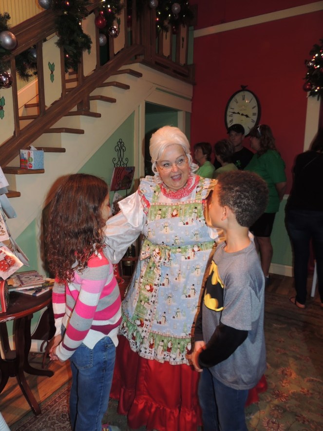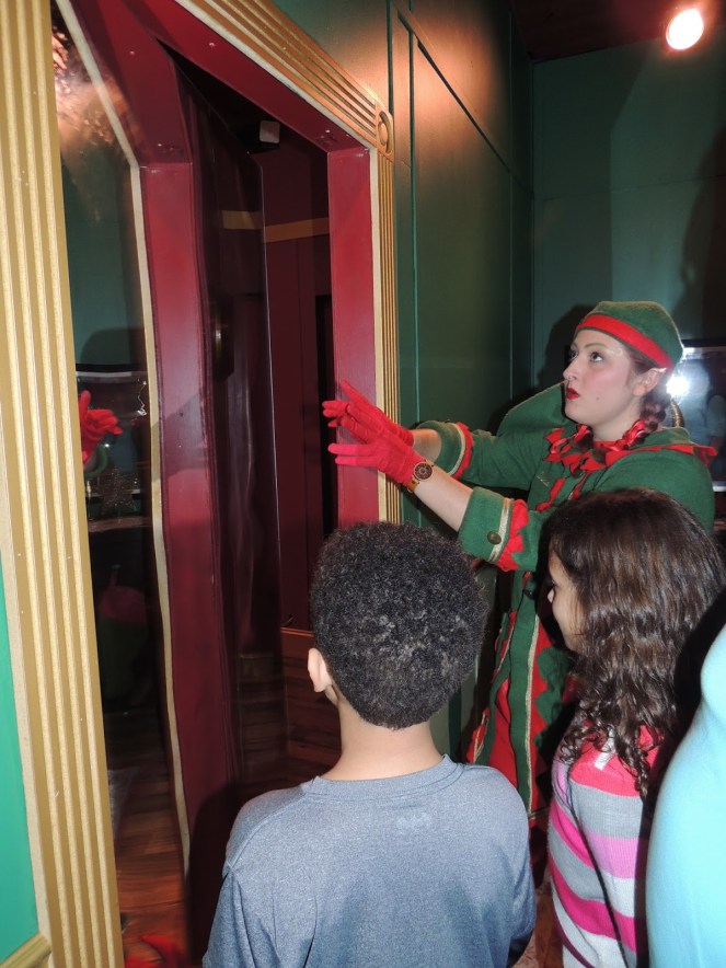 After more rides to appease the kids, we sought out character meet and greets. Santa’s Place (very clearly sponsored by Coca Cola) was super sweet! You ring a door bell and are invited in by a cheerful elf. She leads you into the living room where Mrs. Claus shows you around. Another elf leads you down a hallway, through a magic door, where you finally meet Santa Claus.
