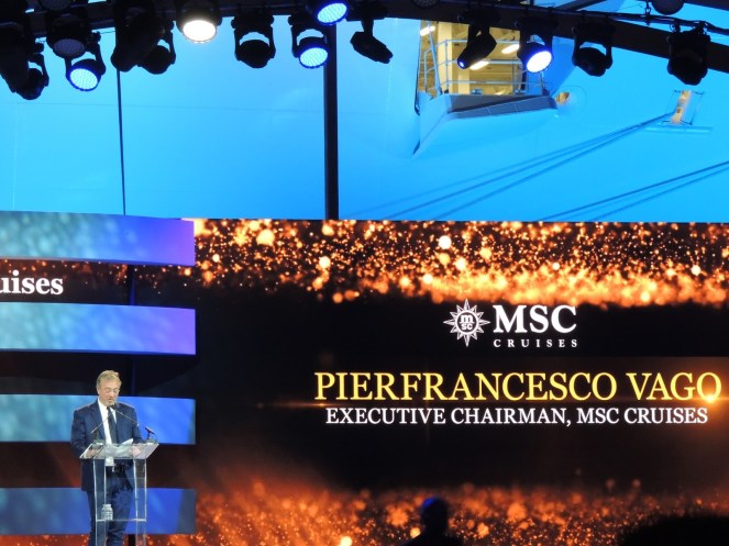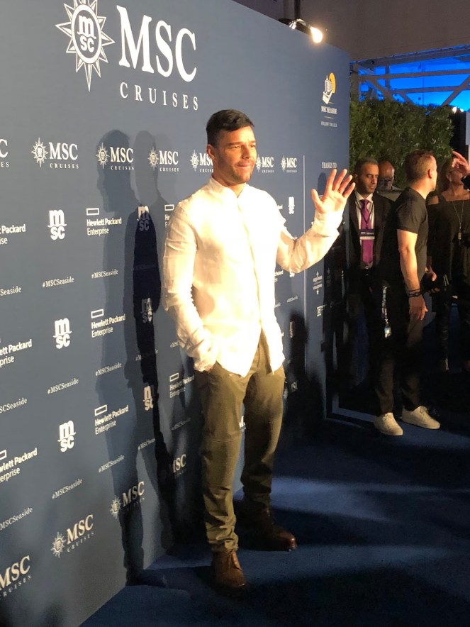 We retired to our cabin for a little rest and relaxation before the Naming Ceremony that evening on the pier. Our host for the evening was the dreamy Mario Lopez. We were introduced to the MSC executives who reinforced MSC’s goals for the North American market. Dan Marino made an appearance, then we were entertained by Andrea Bocelli accompanied by Voices of Haiti, and Ricky Martin. So freakin’ awesome!! Finally, Sophia Loren, godmother of all of MSC’s ships, cut the ribbon which broke the champagne bottle. Cue the fireworks!