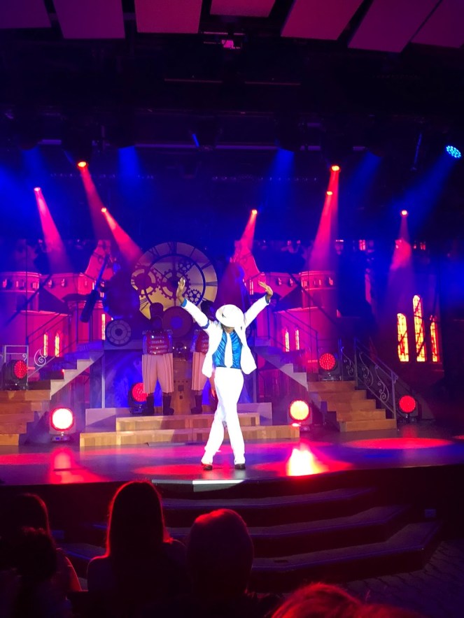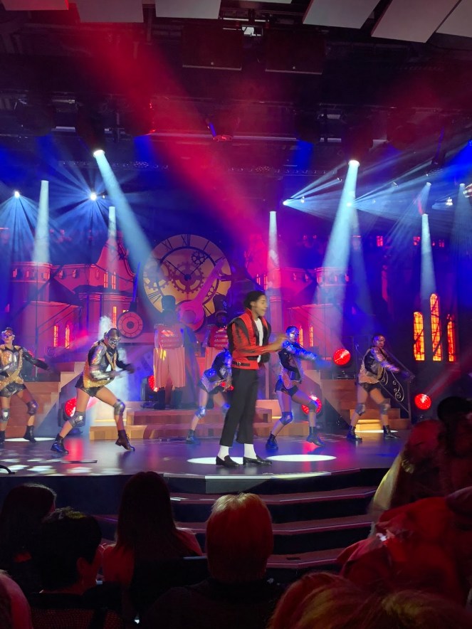 The show is a little… erm, eccentric. It was a fusion of Christmas melodies, a weird goat lady, acrobatics and Michael Jackson. The actor who played Michael was superb! I especially enjoyed the zombies from Thriller crawling up the stairs to get to the audience.