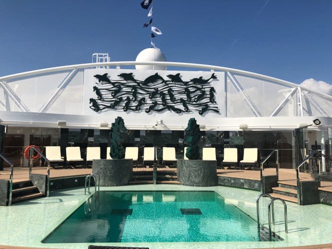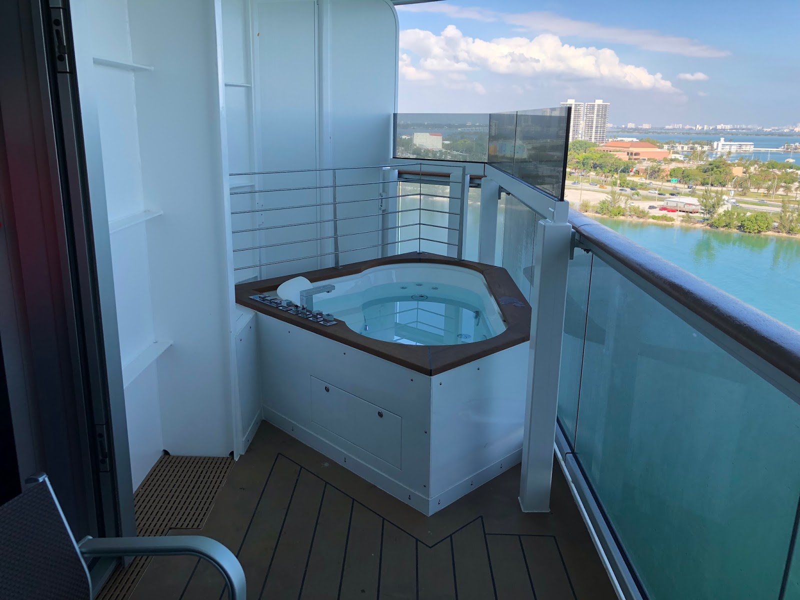 Welcome back, friends! So what did I get up to on Day 3? Well, exploring the various staterooms was top of the list! My absolute favorite was the 2 bedroom / 2 bathroom Grand Suite…because of this balcony. There are only three of these suites on the ship and they are exclusively available with the Wellness or Aurea Experiences.