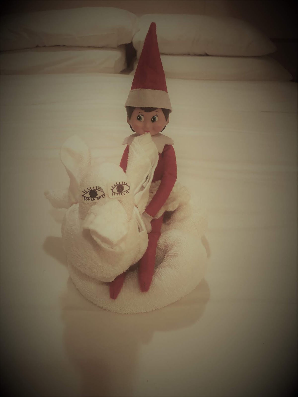 As we were following him to Studio B to collect Christmas presents, we stumbled upon this elf who clearly had too much eggnog the night before. We also ran into my mother-in-law who joined us.