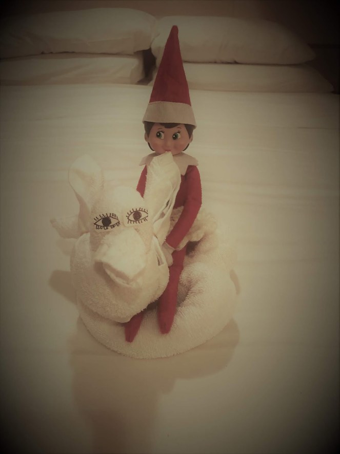 Did I forget to tell you that Odette found us in the middle of the Atlantic? Alas, she would say her goodbye on Christmas Day, but she brought Stinky and Blinky joy for a few days every time they returned to the cabin and found her in a new pose.