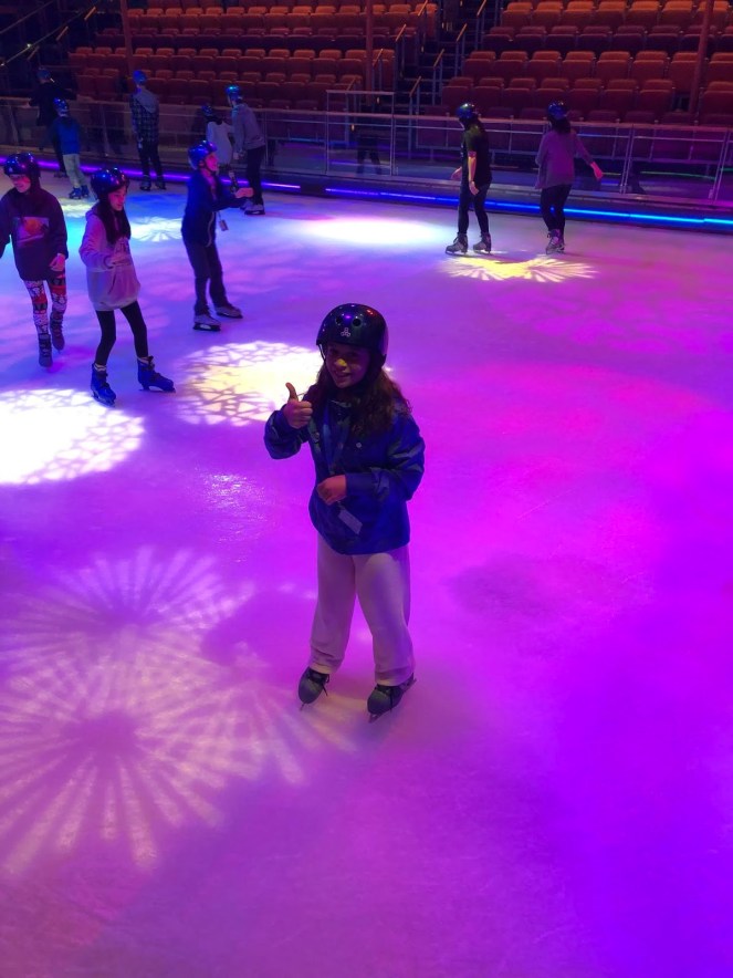Blinky ice skated beautifully. She said if anyone from RCL were watching and needed a little girl for the ice skating show, she wanted them to choose her. All the heart emojis!!! I hung around the perimeter in case I fell. Which I did. And Stinky did his best but clearly needs more practice. He spent most of the time picking himself up off the ground. I was so proud of him for not quitting.
