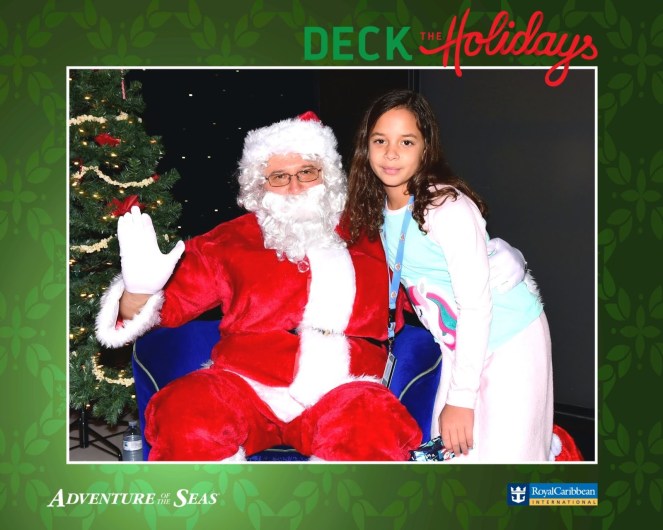 According to the schedule, we wouldn’t dock in San Juan until lunchtime. So we raced back to the cabins to wake everyone up to go ice skating in Studio B. Almost two hours later, when we finally made it back, kids were still in line waiting on Santa. Bless his heart.