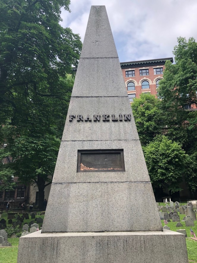 Next we visited the Granary Cemetery where lots of notable figures are buried including Samuel Adams, Ben Franklin’s parents, and Paul Revere.