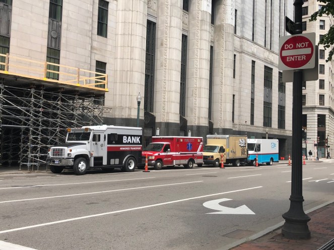 We woke up on our last day determined to squeeze in as much as possible. We didn’t get far before we hit a literal road block. There was a stunt crew from the movie Free Guy filming and had temporarily blocked the streets. Unfortunately we didn’t get to see Ryan Reynolds but enjoyed watching for a few minutes. This reminded us of the time we were in Chicago and stumbled upon a scene being filmed for Chicago Fire.