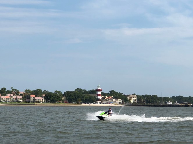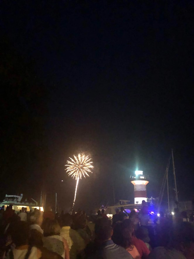 With our mini-renovation in full swing, we decided to take a short break over the holiday weekend to visit Hilton Head, SC. We choose this location because we wanted a beach trip somewhere we’d not visited before. It was a bit of a drive, but we made it in time to enjoy the fireworks show at Harborside Marina. Grammy was smitten!