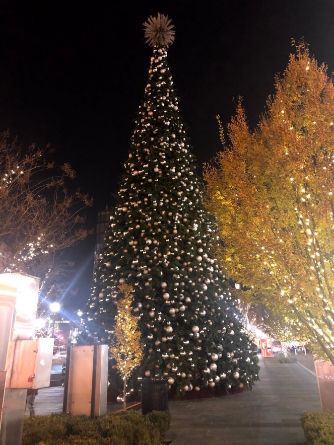 We walked back to City Center to our hotel and finally noticed the City’s Christmas Tree that was right in front of our hotel. We’d miss the tree-lighting ceremony, but it was still fun to see it decorated.