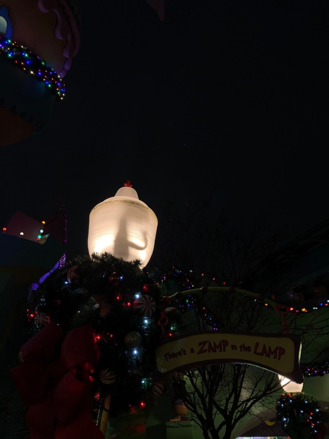 The area is so beautiful at night, especially dressed for Christmas. See if you can find the Zamp in the Lamp.