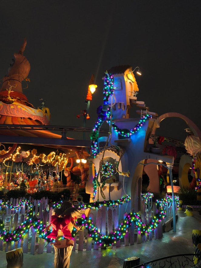 And even went to see Grinchmas – Universal’s take on How the Grinch Stole Christmas – when the rain was particularly unbearable. This was quite the treat! Even Stinky couldn’t help but giggle in spite of himself.