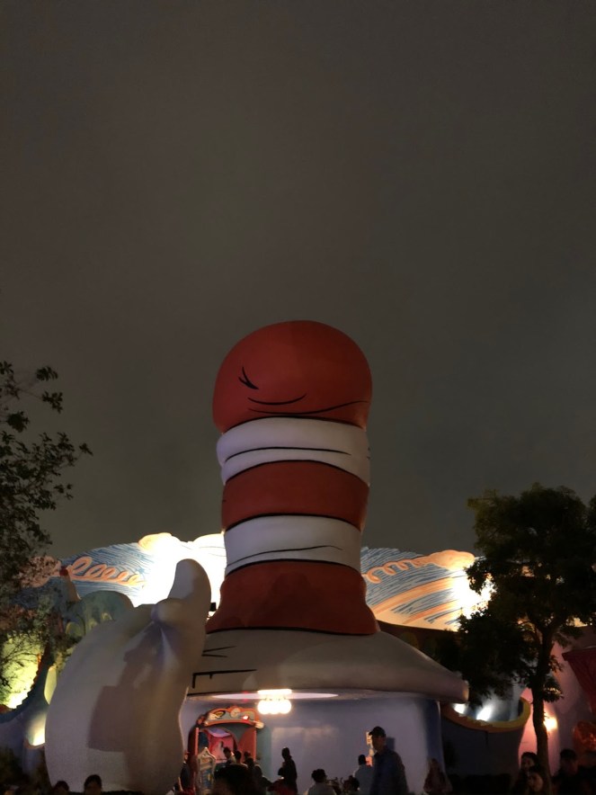 Stinky and Blinky reluctantly agreed to indulge my request to visit Seuss Landing. We rode The High in the Sky Seuss Trolley Train Ride, which offers fantastic views of the park btw!