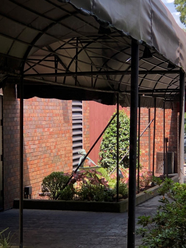 The tour moved through a storage area, to the Artist’s Entrance, where Tammy Winette’s Rolls Royce greeted us. The Rolls was damaged in the flood 10 years ago, but was subsequently repaired and returned to its place of honor. Also worth noting out here is the little fountain on Star Walk, donated by the family of Minnie Pearl to eternally greet artists as they come to perform.