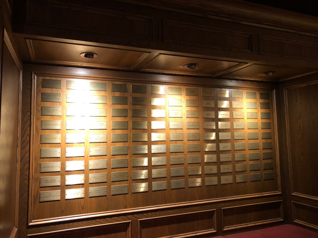 Back inside, we visited Studio A where episodes of Nashville, CMT Crossroads and the last few seasons of Hee Haw were filmed. (Spoiler alert…I’ve never seen any of these shows.) The space is also used for artist parties and to celebrate Opry Membership Milestones, e.g. Dolly Parton celebrating 50 years a member of the Opry.