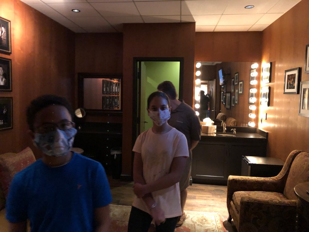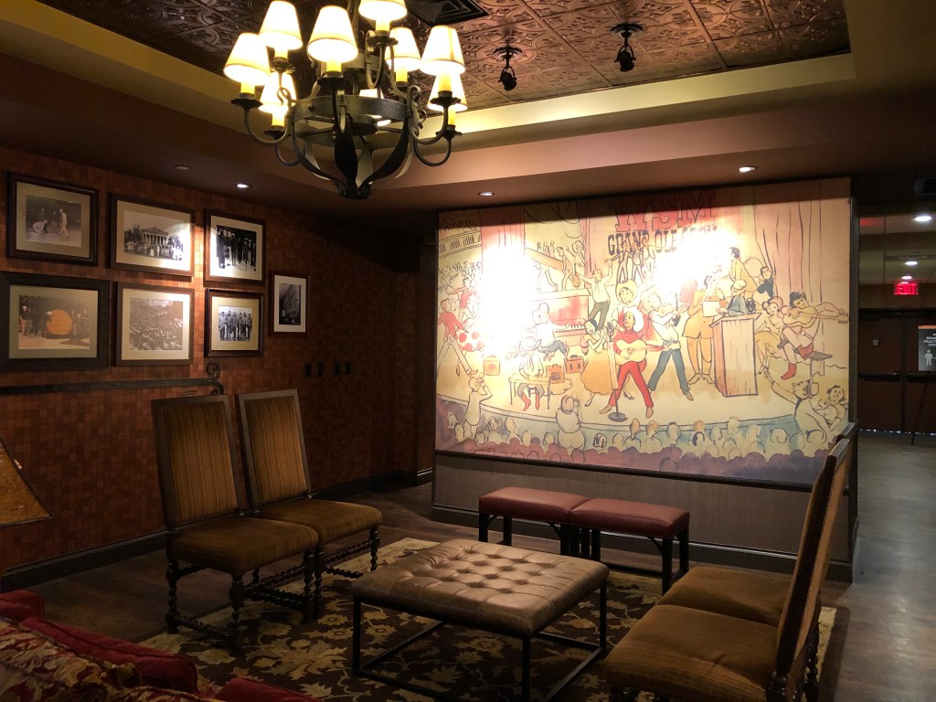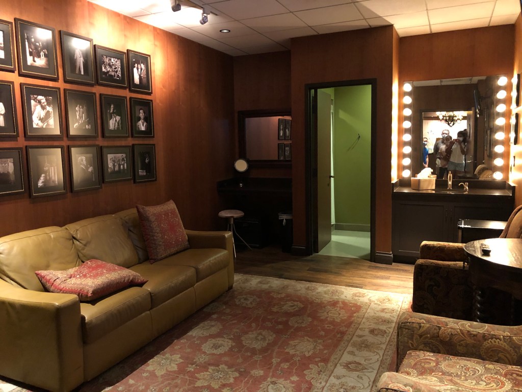The Green Room, or Family Room is a common area just outside the dressing rooms where artists can gather. It is a long, rectangular room with multiple seating arrangements. Can’t you just imagine your favorite artist hanging out here on a Saturday night?