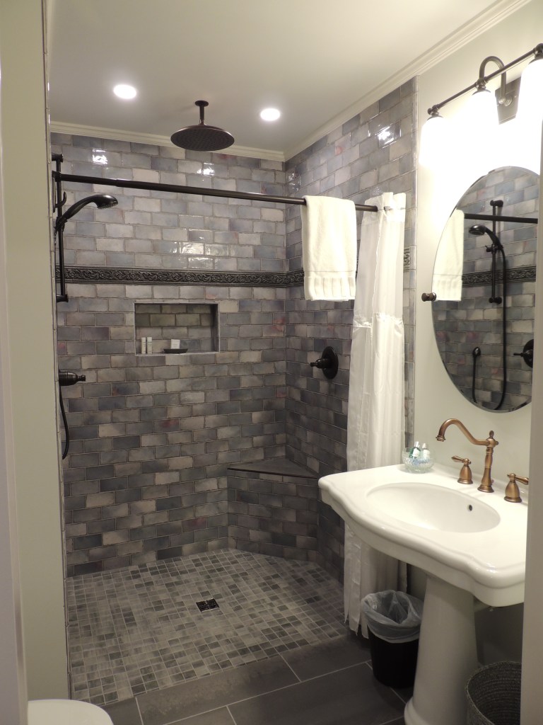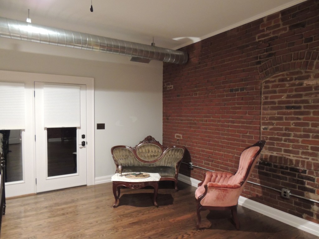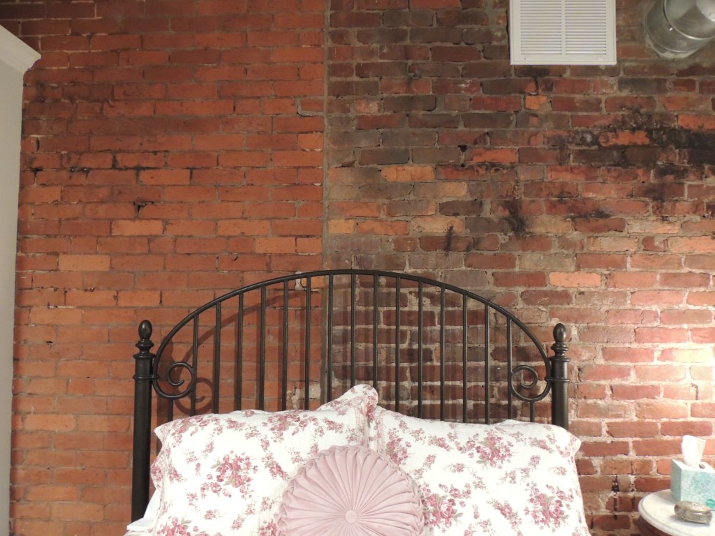 After a full day in the city, we arrived at the B&B in the evening. The gas light on the porch was lit, and I was immediately smitten. We stayed in the spacious Centuries Room, so named because an addition in the early 1900s utilized brick in a contrasting color. This feature is most prevalent behind the beds. Just outside is a secret garden where Blinky and I sat and identified plants for a spell.