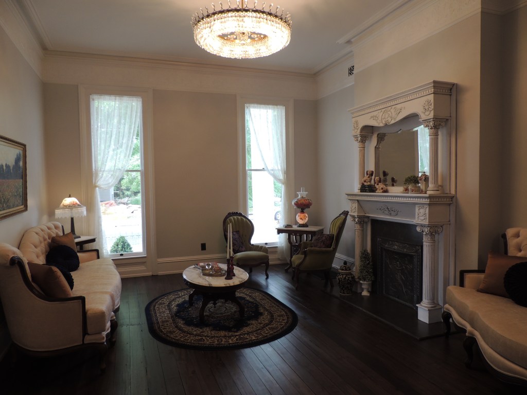 Immediately following breakfast, Melinda was gracious enough to give us a tour of the home. (Please note that some of the pictures were taken the night before and some the morning of the tour.) Her passion about the restoration is evident in everything. From selling her family’s farm to pour her heart and soul into the Belle Louise, to the framed artifacts like newspaper clippings she found in the walls, to the period furnishings outfitting the home. Make no mistake, restoring a home this size is a gargantuan feat, and not for the faint of heart. To do so successfully, is a monumental achievement.