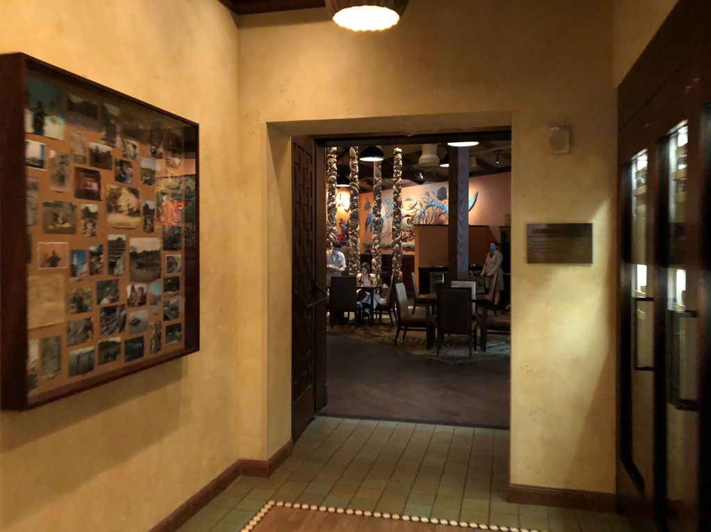 Inspired by the world travels of the park’s creators including retiring veteran Imagineer Joe Rohde, the interior is thought to resemble a gallery featuring artwork from Africa, Asia and South America. We were seated in the Grand Gallery with inspiring views of the light up wildlife.
