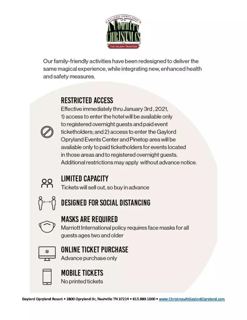 Update 12/21/2020: To ensure social distancing with immediate effect, the Gaylord Opryland Resort & Convention Center implemented several new resort access policies. This one was released today.