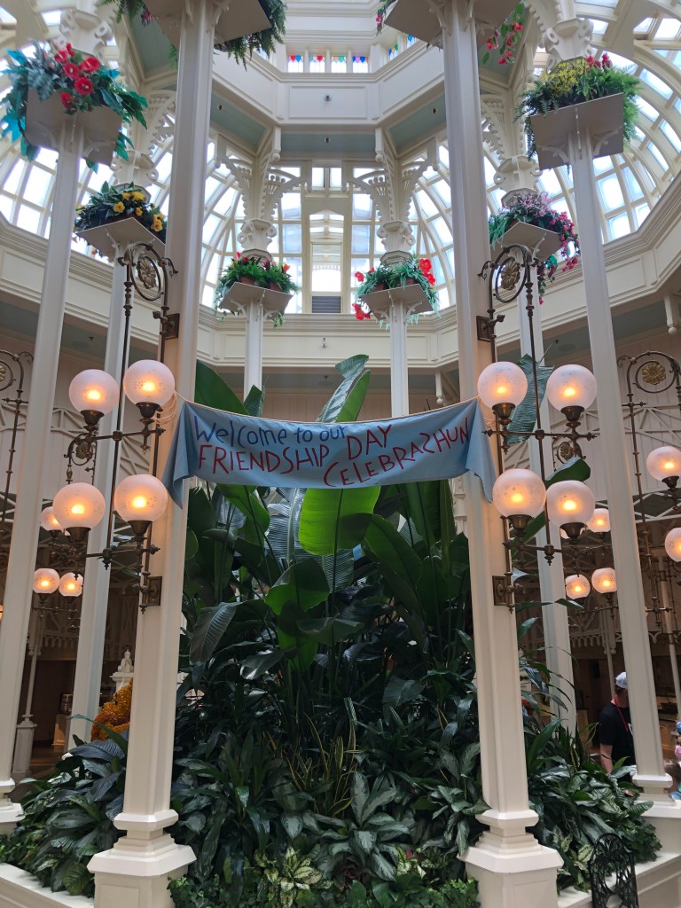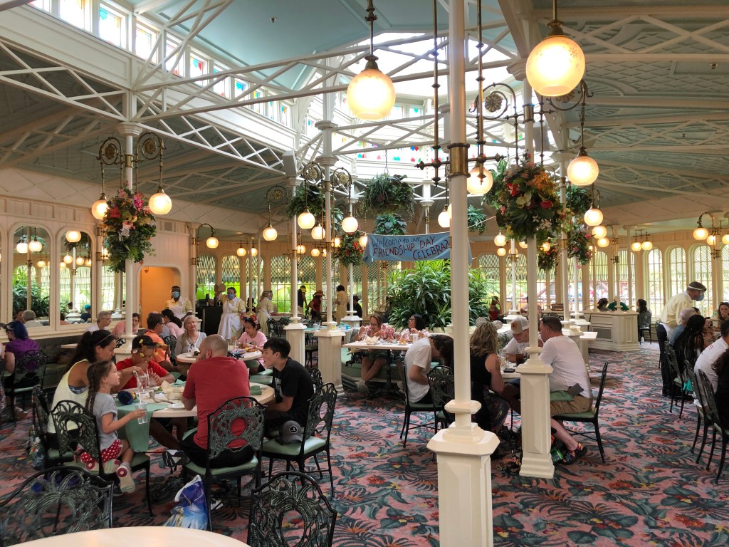 Your party is announced at the front door with the greeting, “Welcome the X Family!” Inside, you’re sweetly reminded that every day is Friendship Day at Crystal Palace. I thought the topiaries are a nice nod to the former characters that entertained guests here before.
