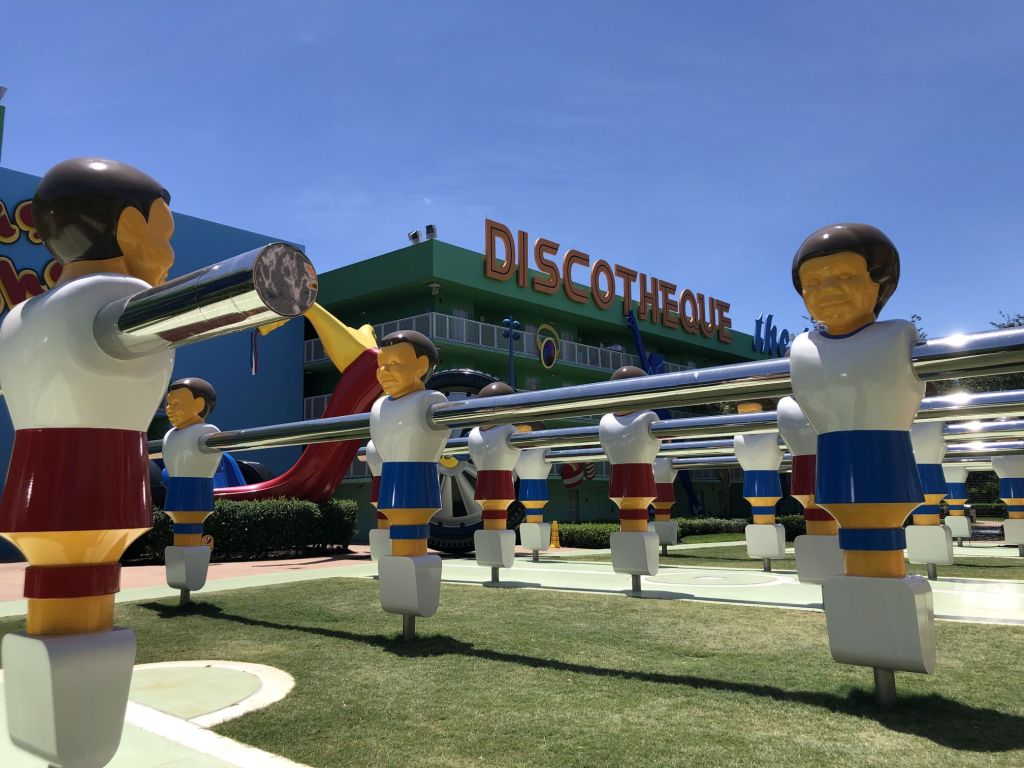 Disney’s Pop Century Resort is a fun, family-friendly, value resort. Parents and grandparents will enjoy the walk down memory lane as the larger-than-life theming highlights pop culture from the1950s to the 1990s.