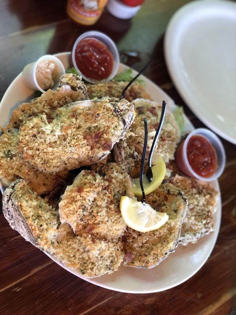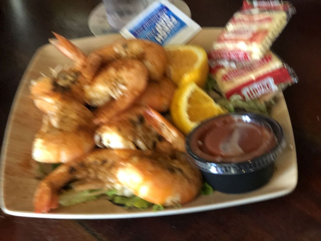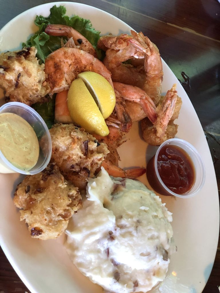We enjoyed oysters, peel and eat shrimp, conch fritters, and fried shrimp. And I highly recommend the Moscow Mule. Also refreshing on a hot day. But expect some feathered friends at your feet during your meal. 🙂