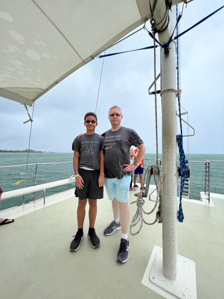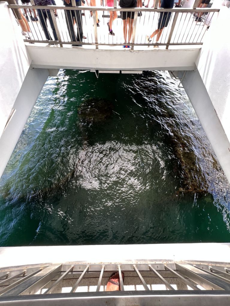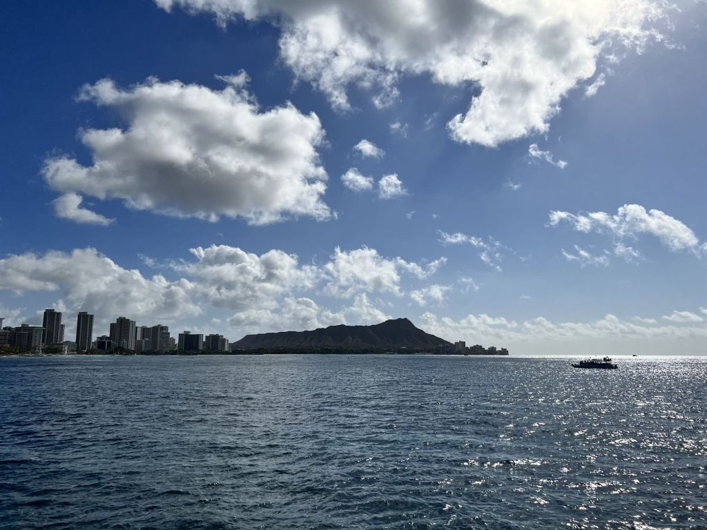 On the Ocean Voyager Tour, we had to cross Secret Island – formed hundreds of years ago when the Native Hawaiian people walled off a section of the ocean to create a fishing pond – to board a catamaran. We sailed right into a squall which made for a pretty rough ride. The captain had a great sense of humor, which the teen enjoyed tremendously and rode it out on the upper deck with him. In spite of being soaked and cold, we spotted turtles in the open ocean, and received a crash course in the fish and oysters raised in the fish pond.