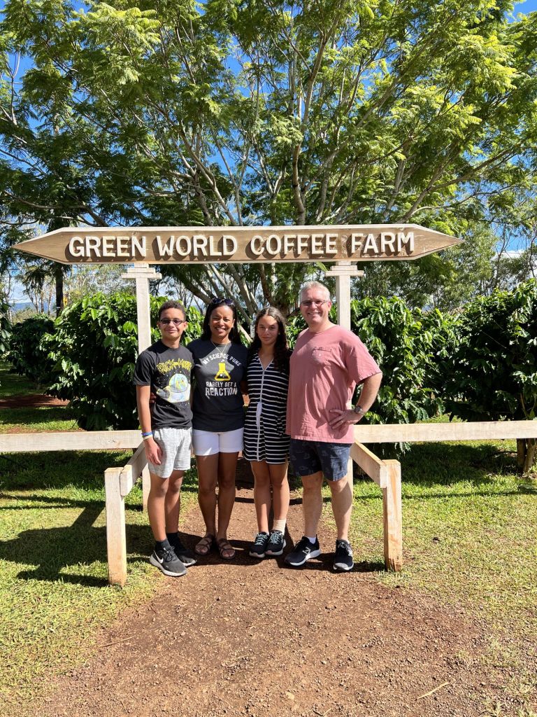 Green World Coffee Farms and its retail coffee shop sits on 7 acres on O’ahu’s North Shore. The farm is home to more than 3,000 arabica coffee trees. We toured the garden, sampled the coffee, and brought home a bag of freshly ground Macadamia Nut coffee beans. YUM!