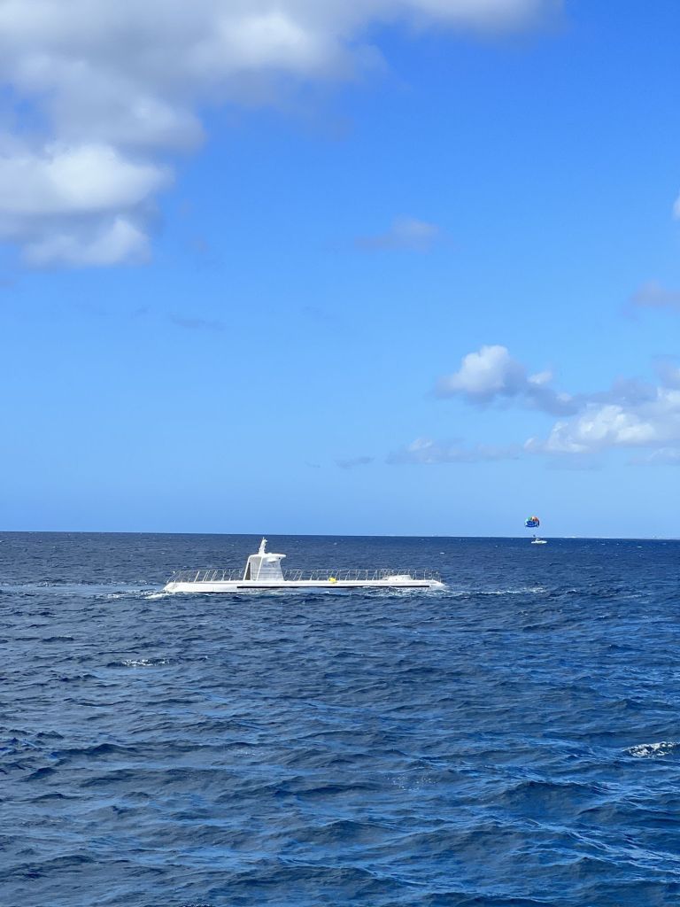 We ended our trip with a 111′ dive on the Atlantis XIV, O’ahu’s only submarine adventure, and the world’s largest recreational submarine. The boat ride to the sub provided unobstructed views of Diamond Head Crater. We saw turtles and an abundance of fish at the dive site. You’ll note the subdued colors which are a result of UV rays not being able to penetrate this deeply.