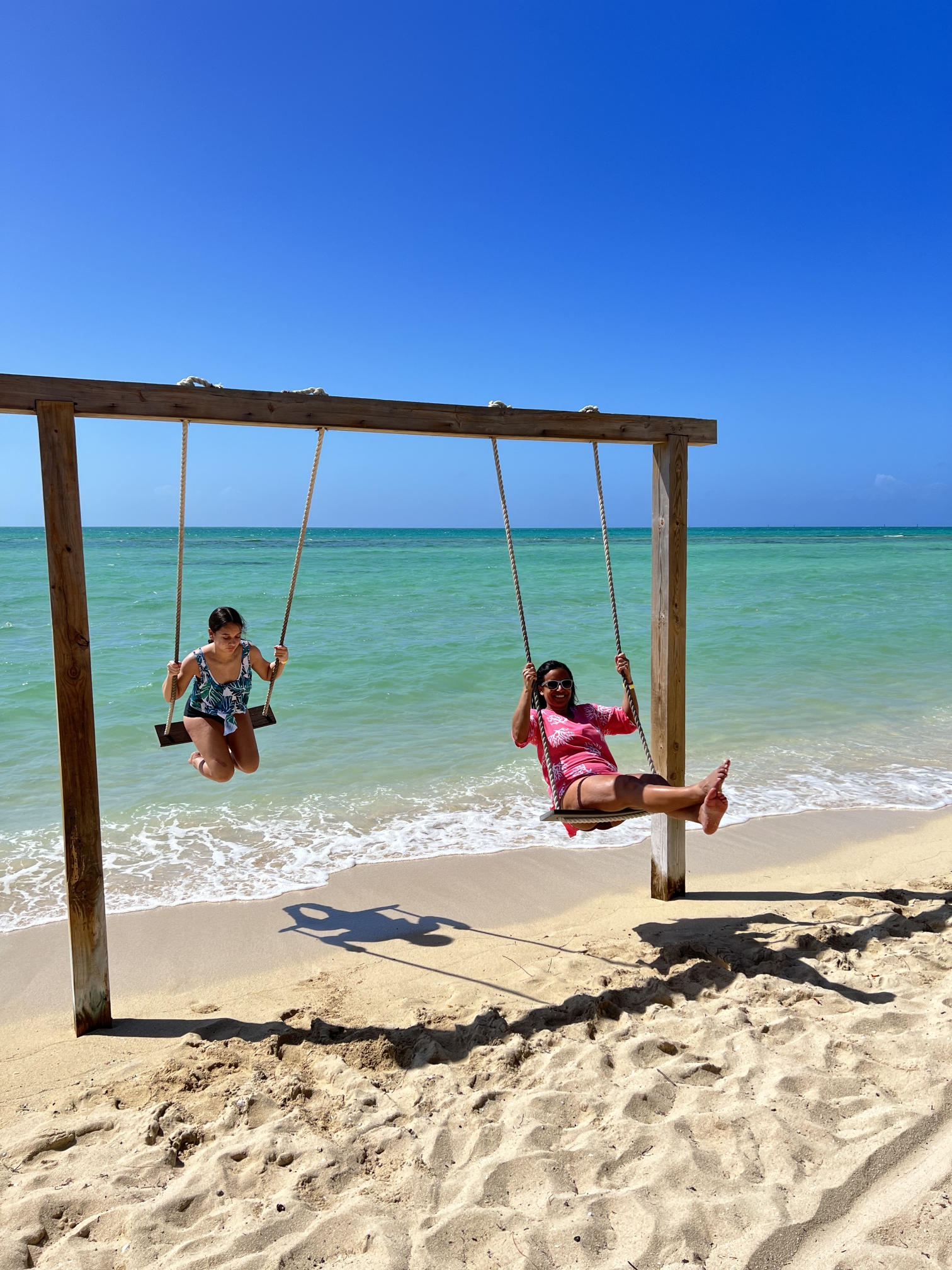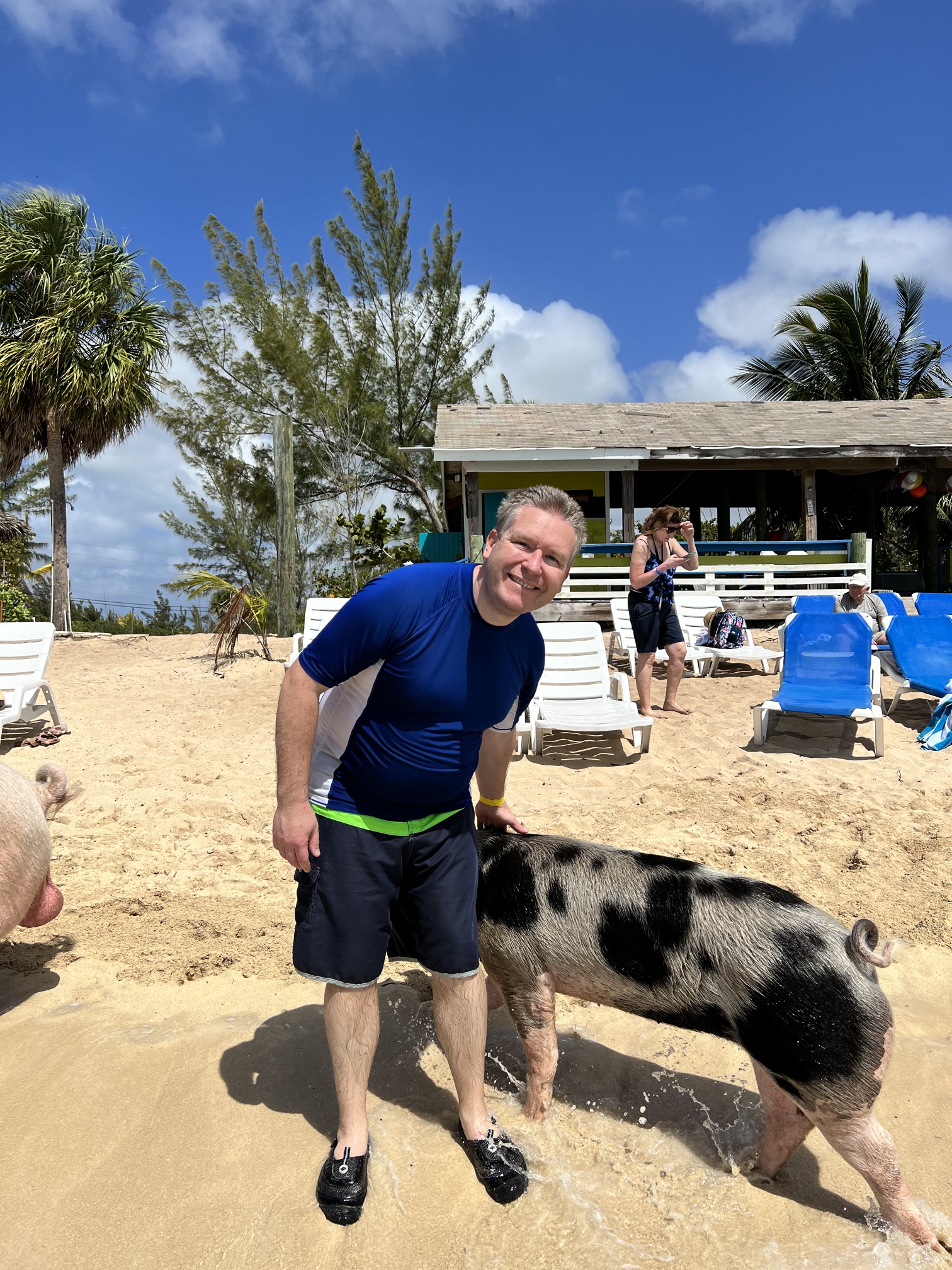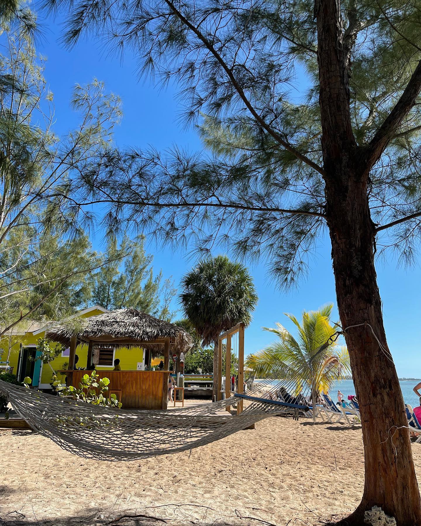 Tucked away in Adelaide Village on the western tip of New Providence is Da Pig Beach. Here you can spend the day on a private beach with water the most brilliant shades of blue and green. Amenities include kayaks, hammocks, swings, and a Bahamian lunch. Staff also played games with the guests like tug-o-war and karaokee.