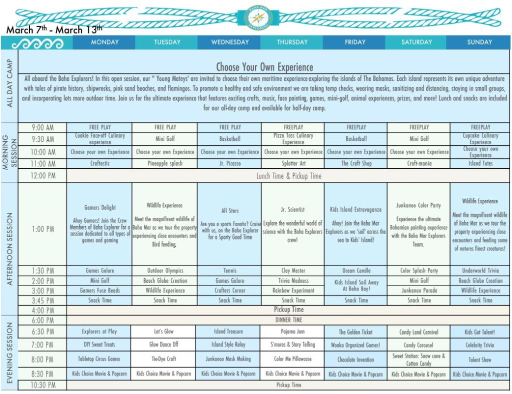 Where to begin? There are a plethora of activities for kids 3-12. This was the weekly schedule when we visited.