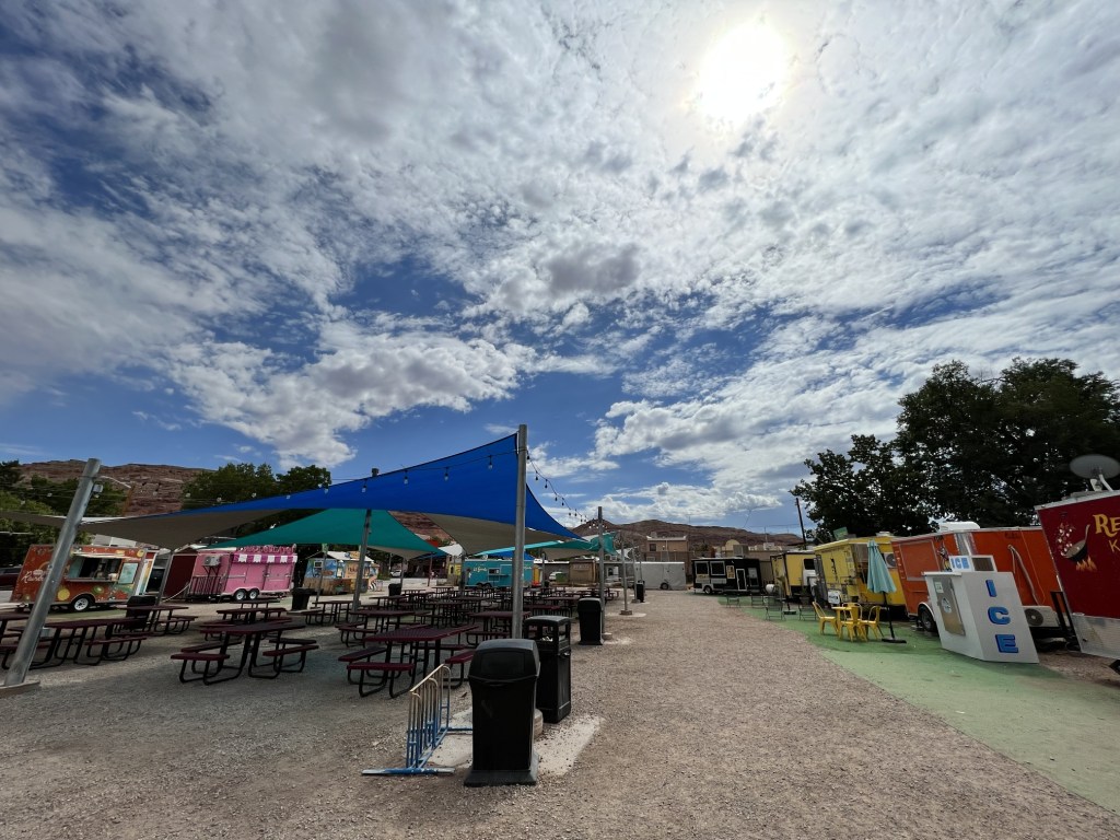 On Day Two, Rocky Mountaineer shuttled us from Salt Lake City to Moab. The transfer time was approximately five hours with two pit stops. We were limited on time for this trip, but if your schedule allows, plan for an additional day in Moab. We did not plan to do any hiking this go round as we knew we’d have spectacular views from the train. (Saving that for a road trip with the teen and tween.) So we cooled down a little at the resort’s pool then explored Main Street Moab after dinner.