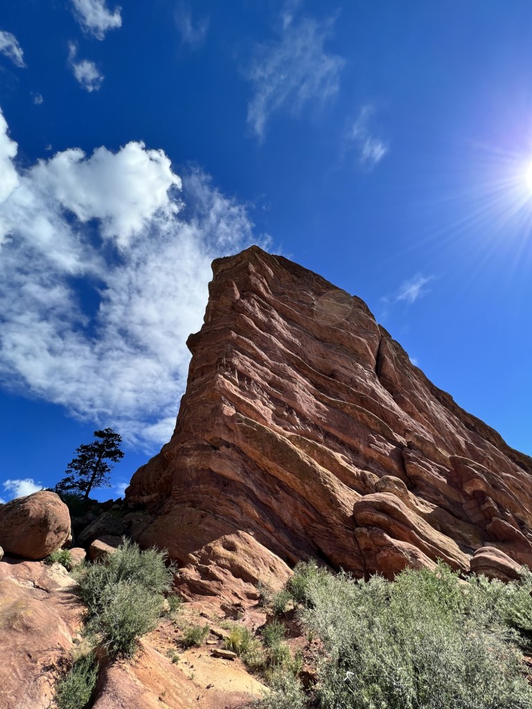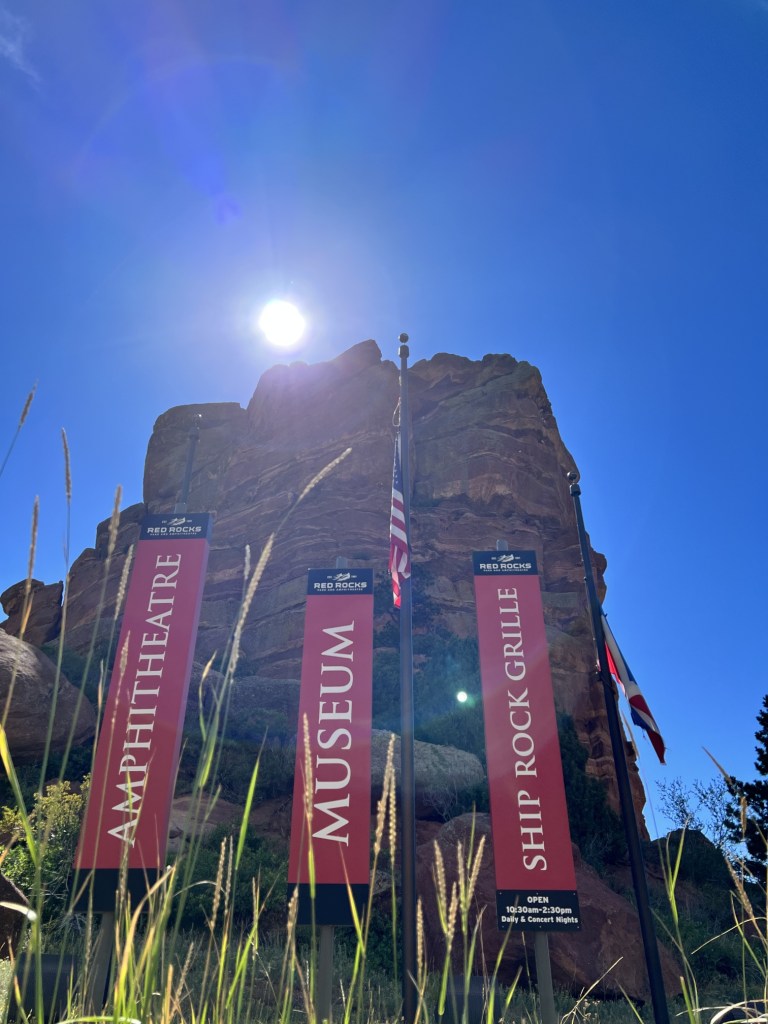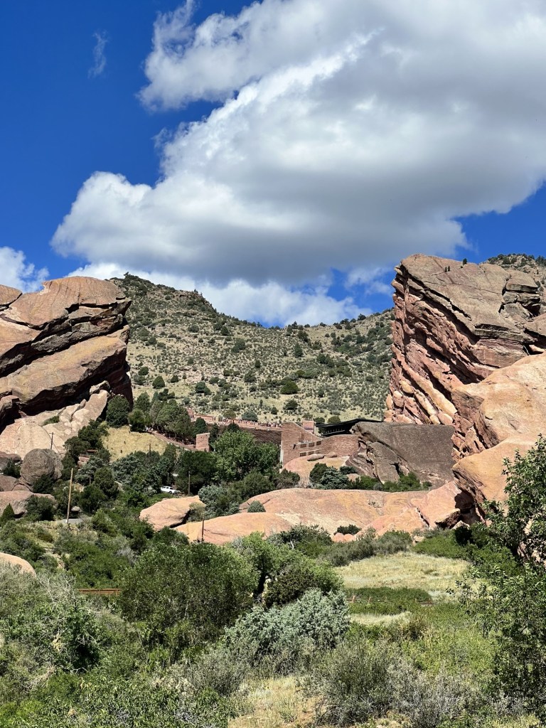 But Red Rocks Park and Amphitheatre is so much more! It is 6,450 feet above sea level, and spans over 738 acres. The landscape is a flora and fauna wonderland. Dinosaurs lived here and their fossils are still found today. This geological phenomenon is a transitional zone where the Great Plains meet the Rocky Mountains. It is the traditional territory of the Ute, Cheyenne, and Arapahoe Peoples.