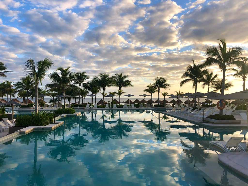 UNICO 20°87° Hotel Riviera Maya is an award-winning, adult-only, all-inclusive resort. My honeymooners love it! Each room is assigned a local host to attend to the guests’ needs, and the service is unmatched. The beach, like most in Riviera Maya is not the turquoise color you see in Cancun, and may be rocky with large waves. But the pools more than make up for it.