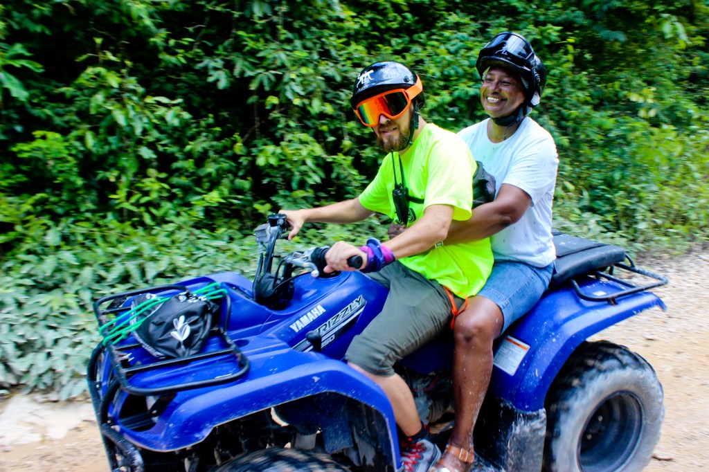 The day started with a safety briefing, followed by an ATV ride through he jungle. FamTrav Grammy started out with me, but quickly switched to riding shotgun with Oscar (one of the guides) as I was, “going too fast.” Ha!