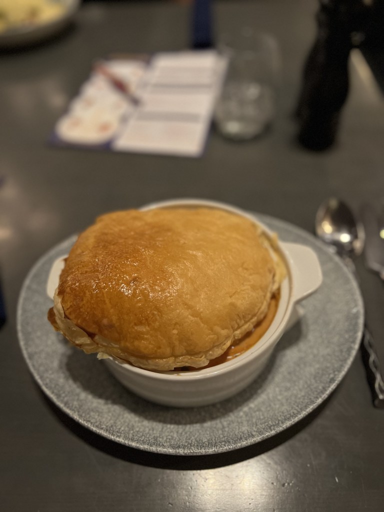 The DH had the New England seafood pie while I enjoyed the Pappardelle Pasta with Chicken. Our culinary adventurous teens opted for…wait for it…cheeseburgers from the Kids Menu. 🤦🏽