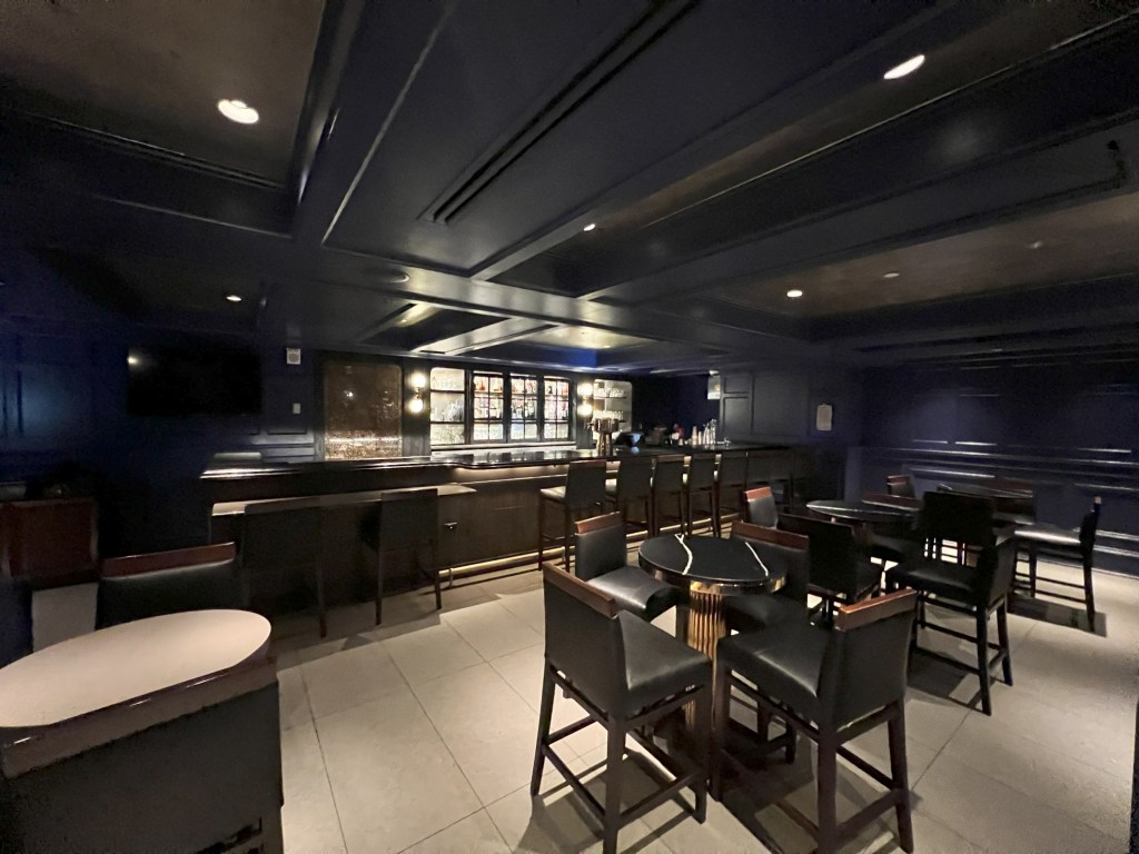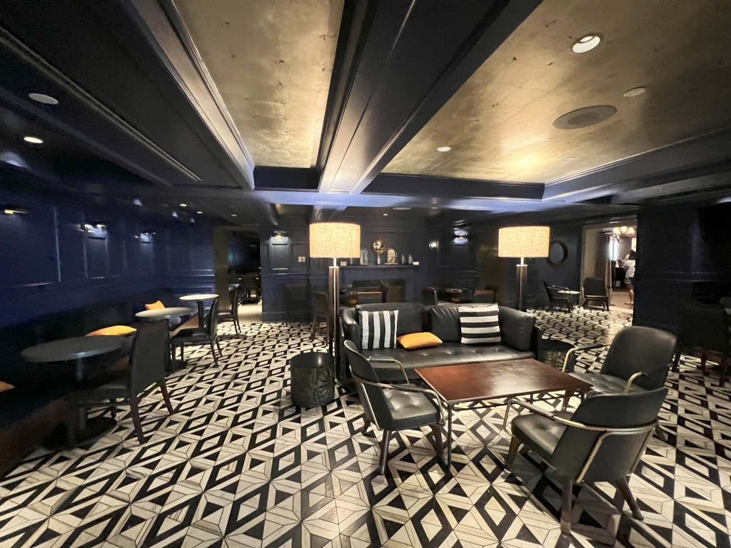 This sleek nautical nook is a lovely spot for lively libations and savory snacks. There is an abundance of seating, including sofas, bistro tables, high tops, and booth-style seating. The full bar pictured above is tucked away in the very back of the lounge behind a very discreet hallway. Don’t miss it!