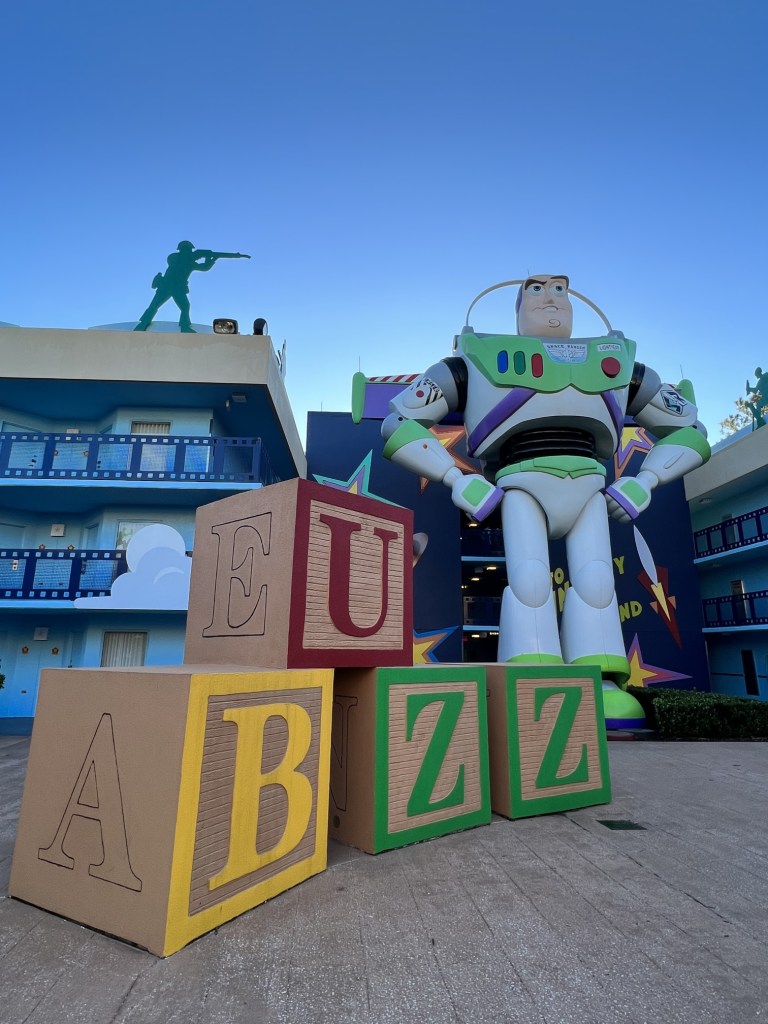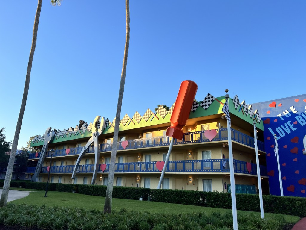 Our epic Fall Break Vacation that included a 4-night Halloween on the High Seas sailing aboard the Disney Wish, and ended with a bang at Disney’s Yacht Club, began at Disney’s All Star Movies. This is one of three All Star Resorts that feature larger than life theming and décor.