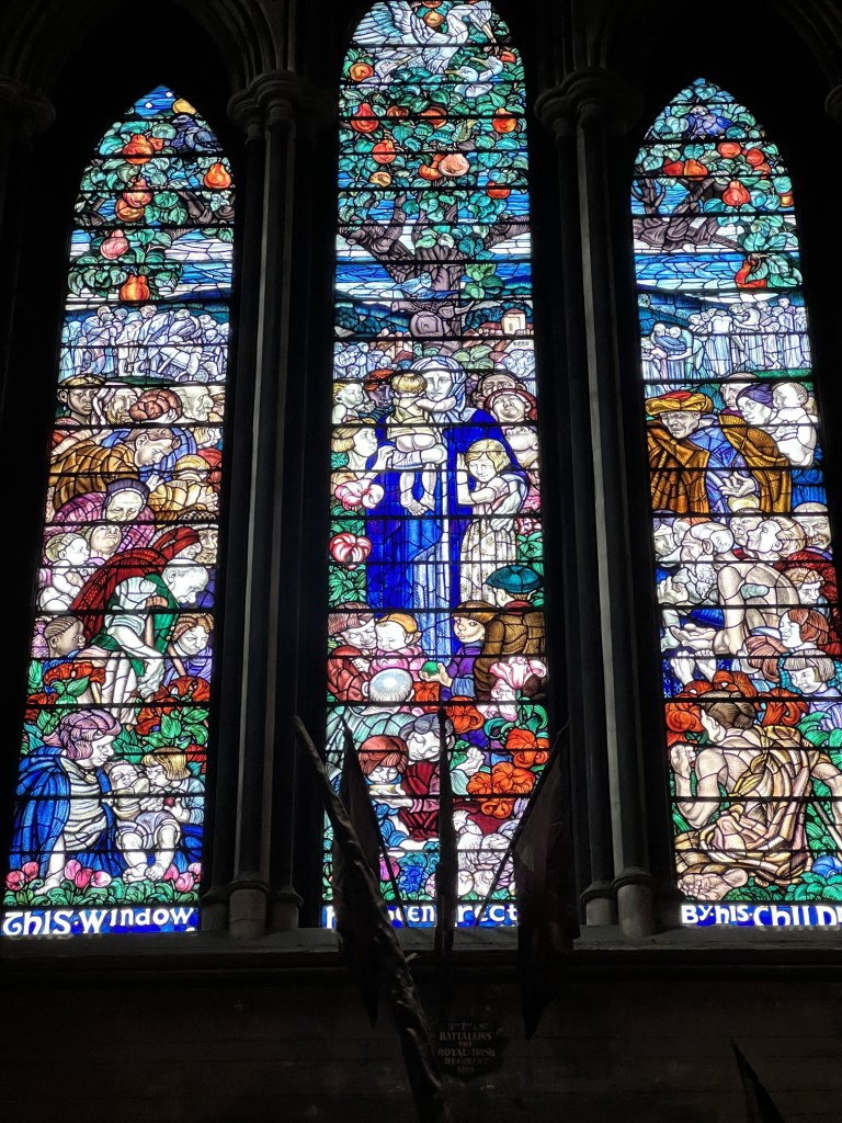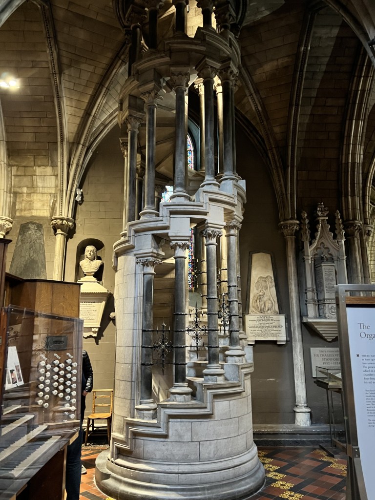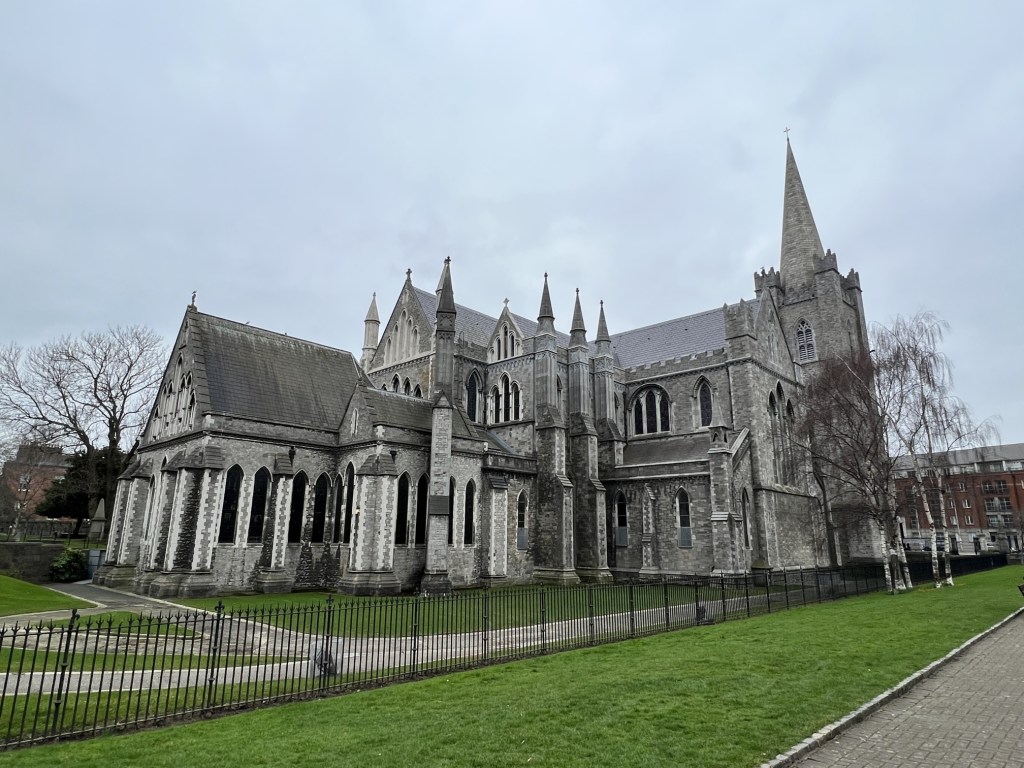 Next we were off to St. Patrick’s Cathedral, the national cathedral of the Church of Ireland. The cathedral, which dates back to the 12th century, is a magnificent example of Gothic architecture, with its soaring spires, intricate stonework, and beautiful stained-glass windows. The interior of the cathedral is equally impressive, with a grand nave, ornate chapels, and stunning altar pieces. Visitors to the cathedral can also explore its many historical artifacts and monuments, including the tomb of Jonathan Swift, the author of “Gulliver’s Travels,” who served as Dean of St. Patrick’s Cathedral in the 18th century. The cathedral is also home to a vibrant choir and a busy calendar of events, including concerts, lectures, and religious services.