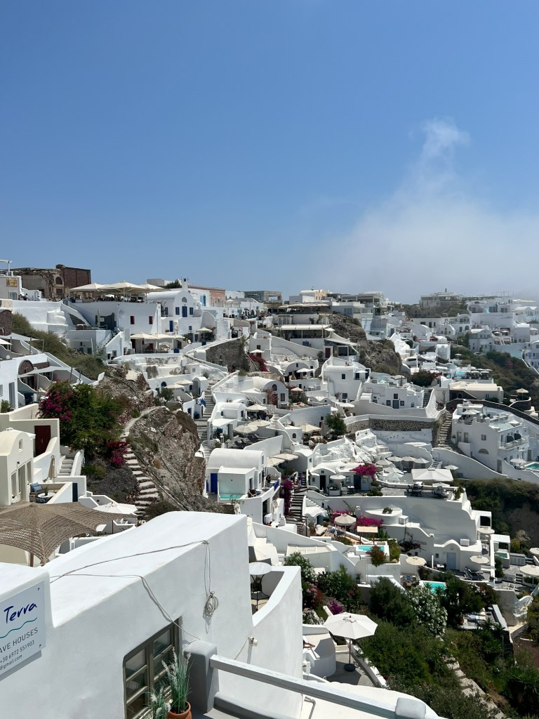 Santorini is a volcanic island in the Aegean Sea. It is known for the white buildings overlooking the coast, some dotted with blue domes. For cruise ship passengers, getting there is a journey. As cruise ships aren’t able to dock at the ancient port, passengers are tendered to the base of the volcano. At any given time, you could have 3-5 ships unloading thousands of passengers simultaneously. So if you don’t have a preferred departure with your cruise line (in this case Norwegian Guests booked in the Haven), this is your first wait. At the base of the volcano, you have three ways to get up: walk, donkey ride, or cable car. The walk uphill is challenging. And riding the donkeys just aren’t a pleasant experience in my opinion. This is why most people opt for the cable car. And the wait is extremally long, approximately 90 minutes! And did it mention how warm it is in the Mediterranean in the summer yet?!