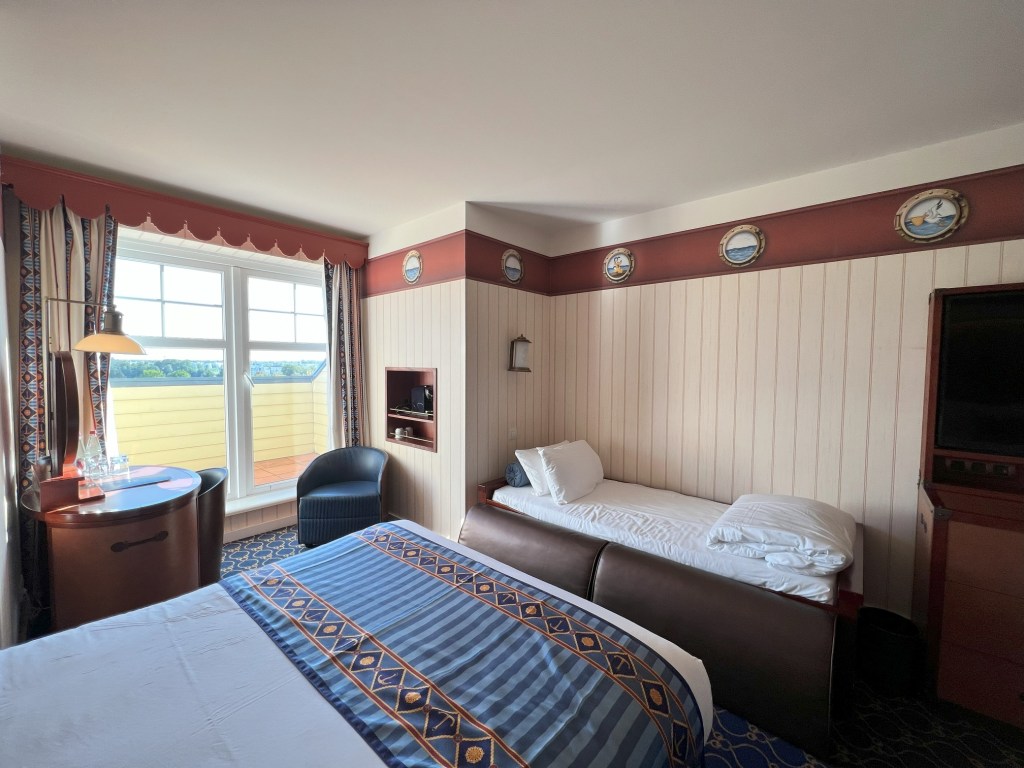 There are so many amenities to enjoy at this hotel, you’ll hardly have time for them all. Disney characters can be found in the lobby, the Nantucket Pool is a heated indoor/outdoor pool, Bay Boutique has the cutest items unique to Disneyland Paris (and awesome pins for trading!), and multiple dining venues which are super convenient. There’s even the Little Captains’ Corner for the littlest guests.