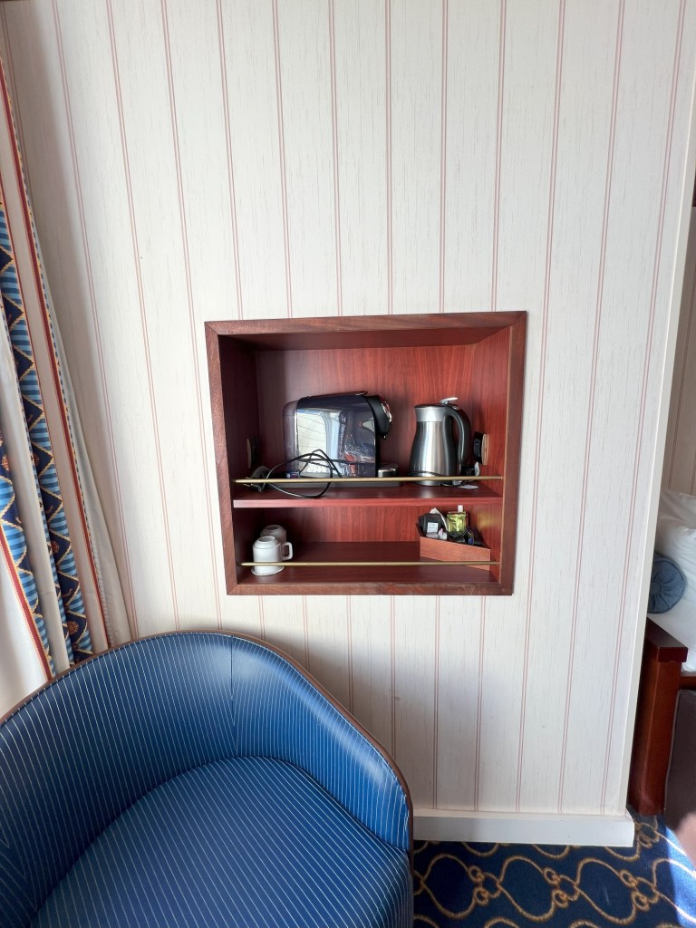 The room features traditional Disney theming. I know dark wood is not everyone’s favorite, but the room itself was spacious, and each teen had their own bed. I loved the bathrobes and slippers provided to use during your stay. Such an elegant touch! Keep reading to learn more about Compass Club Amenities.