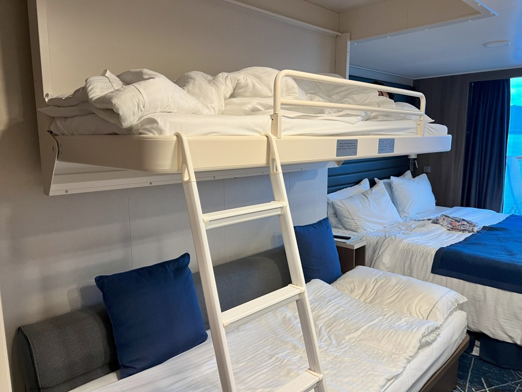 We stayed in a mid-aft Family Balcony Cabin. Perhaps because we spent such little time in the cabin, it felt spacious for the four of us. It definitely felt bigger than our Family Balcony Cabin on the Norwegian Gem! Here’s the cabin tour. It would mean so much to me if you’d like this and other videos, and subscribe to my YouTube channel, which I’m working diligently to grow.