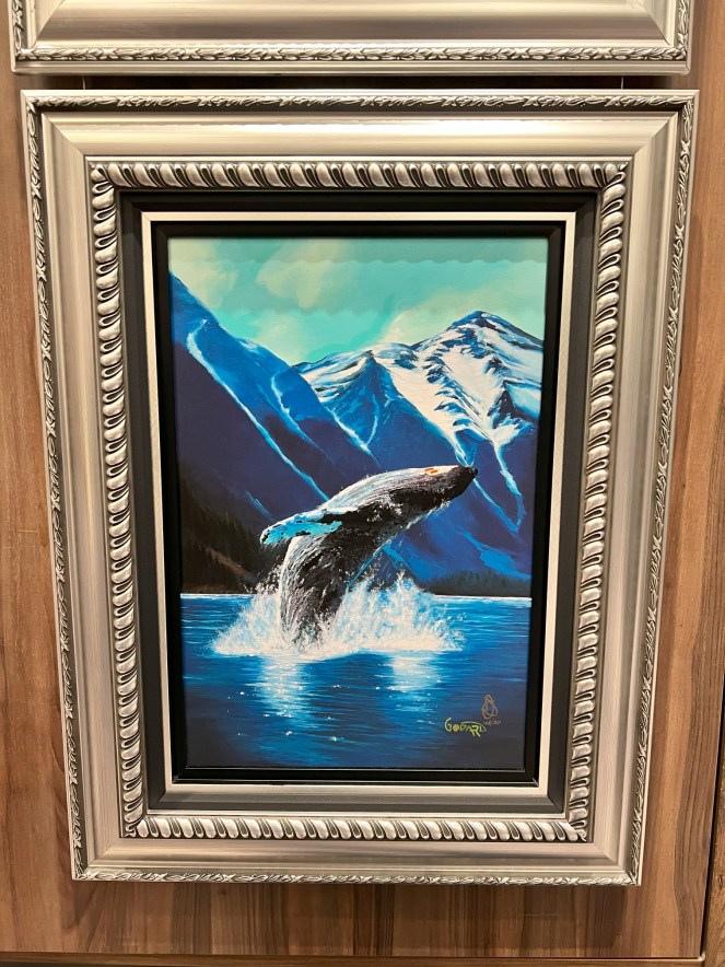 And apparently we’ve evolved into couples who attend art auctions at sea and purchase prints. Still waiting on this gem to arrive.